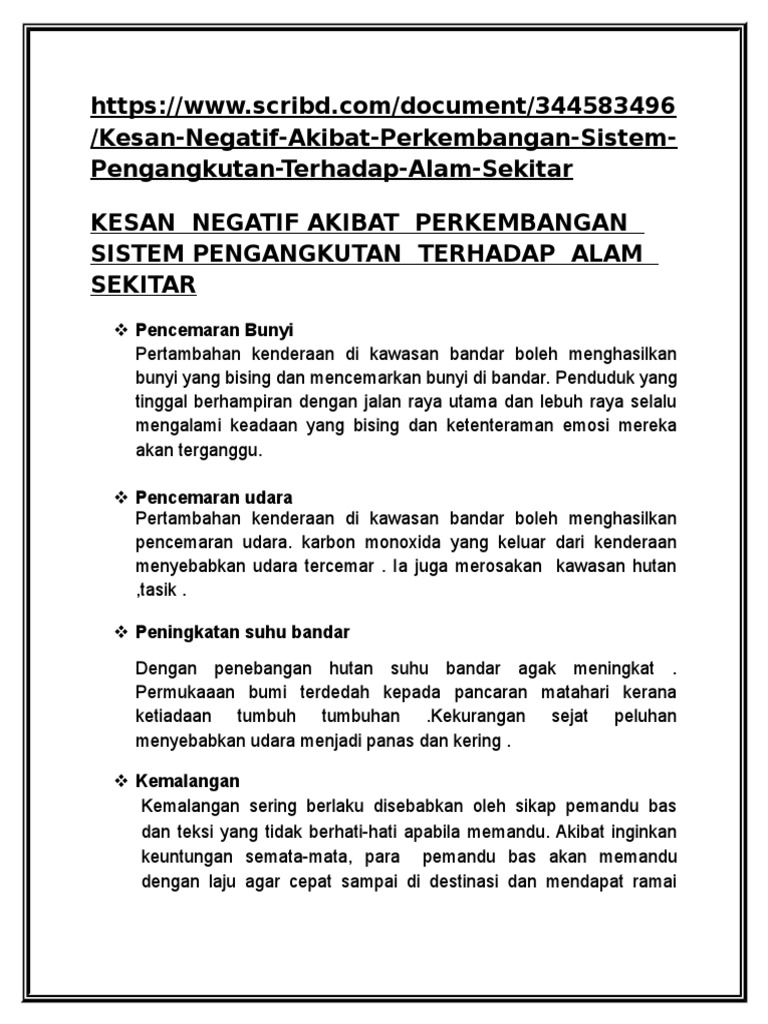Kerja Kursus Geografi 2013 Pengangkutan Awam. KESAN PENGANGKUTAN DAN PEMBANGUNAN TERHADAP ALAM SEKITAR Alam sekitar boleh dirujuk kepada segala benda yang berada di. Kesan jangka masa panjang COVID-19 ke atas pengangkutan awam negara.