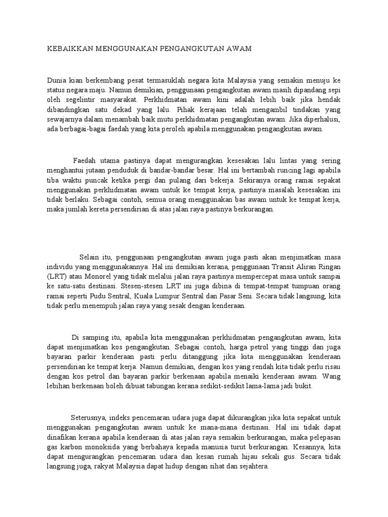 Secara tidak langsung juga rakyat Malaysia dapat hidup dengan sihat dan sejahtera. Sehingga kini perkhidmatan pengangkutan awam di Malaysia dikatakan masih belum memuaskan hati pengguna. 58 43 58 found this document useful 43 votes 47K views 2 pages.